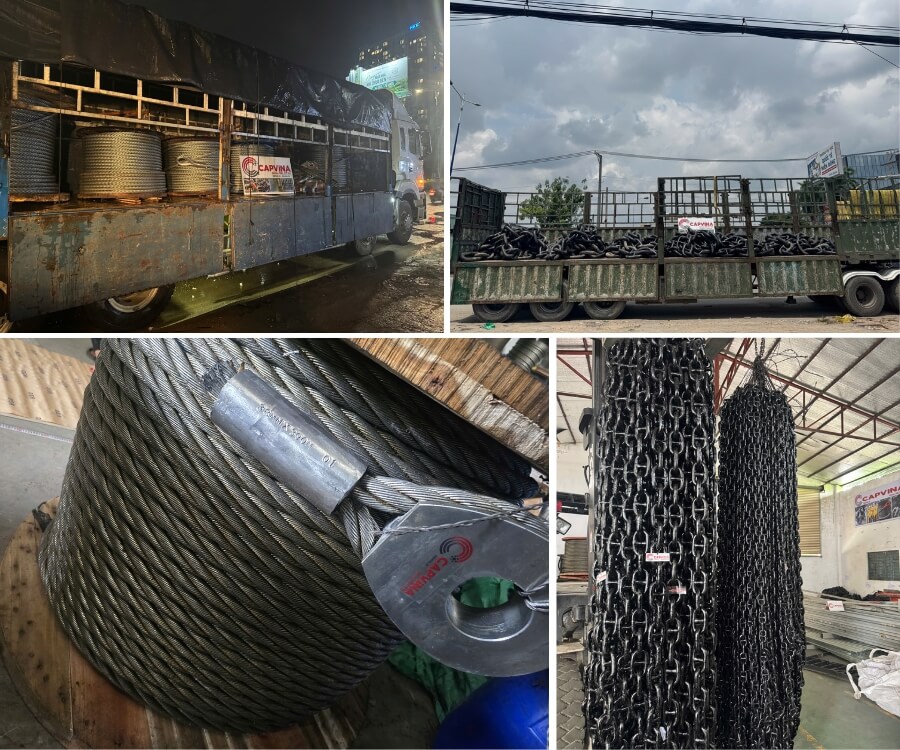 Bao Báp Việt Nam sở hữu hệ thống kho hàng quy mô lớn trải dài từ Bắc vào Nam, sẵn sàng đáp ứng nhanh tiến độ cho các dự án lớn nhỏ. Sản phẩm đa dạng gồm: cáp thép Ấn Độ thương hiệu CAPVINA, cáp thép mạ kẽm, cáp inox, cáp chống xoắn, xích neo – phụ kiện neo, sling cáp thép bấm chì, ma ní, tăng đơ, khóa cáp, kẹp tôn và nhiều thiết bị nâng hạ chuyên dụng khác. Tất cả sản phẩm đều được nhập khẩu trực tiếp từ các nhà máy uy tín tại Hàn Quốc, Trung Quốc, Ấn Độ, đi kèm đầy đủ chứng chỉ CO – CQ, đảm bảo nguồn gốc và chất lượng theo tiêu chuẩn kỹ thuật.